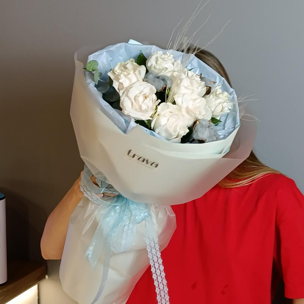 Букет девушке из 7 белых роз на 8 марта в Гдове